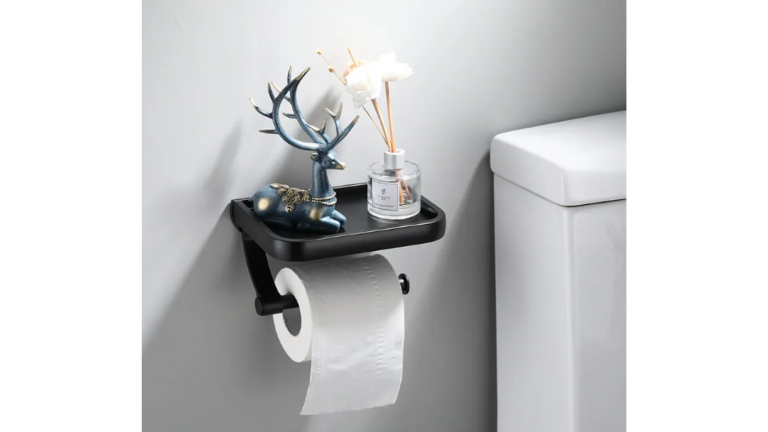 Diese Toilettenpapierhalterung ist mehr als nur funktional – sie bietet zusätzlich eine praktische Ablagefläche. Hier kannst du nicht nur Dekoartikel oder kleine Pflanzen platzieren, sondern die Fläche auch als Handyablage nutzen oder Feuchttücher griffbereit aufbewahren. Mit ihrem modernen Design fügt sich die Halterung nahtlos in jede Badezimmereinrichtung ein und bietet eine elegante Möglichkeit, Platz optimal zu nutzen. So wird dein Badezimmer nicht nur ordentlich, sondern auch optisch aufgewertet.