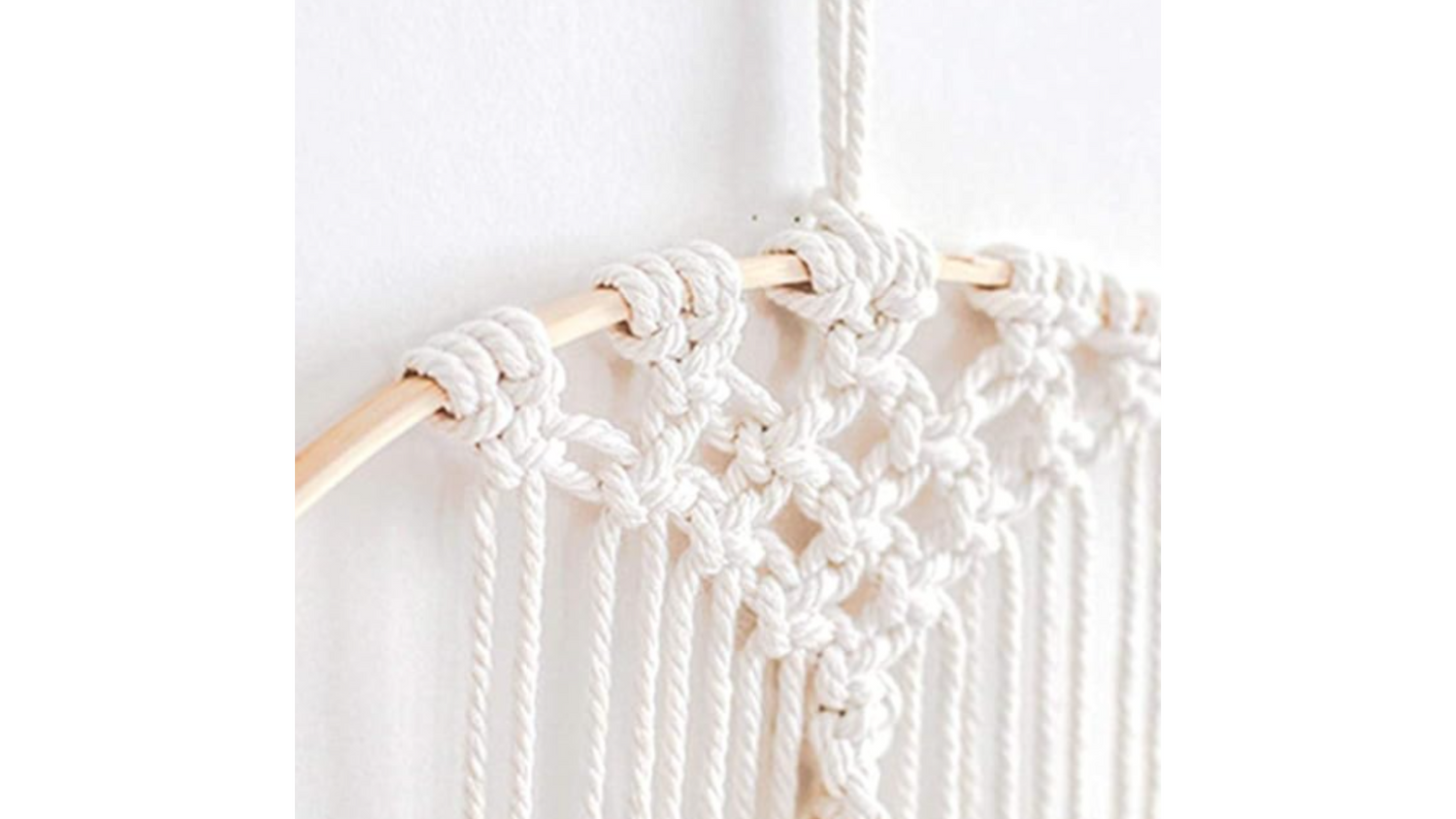 Der handgeknüpfte Makramee-Ring bringt mit seinen feinen Knoten einen natürlichen Schwung in jeden Raum und fügt sich harmonisch in deine Einrichtung ein.