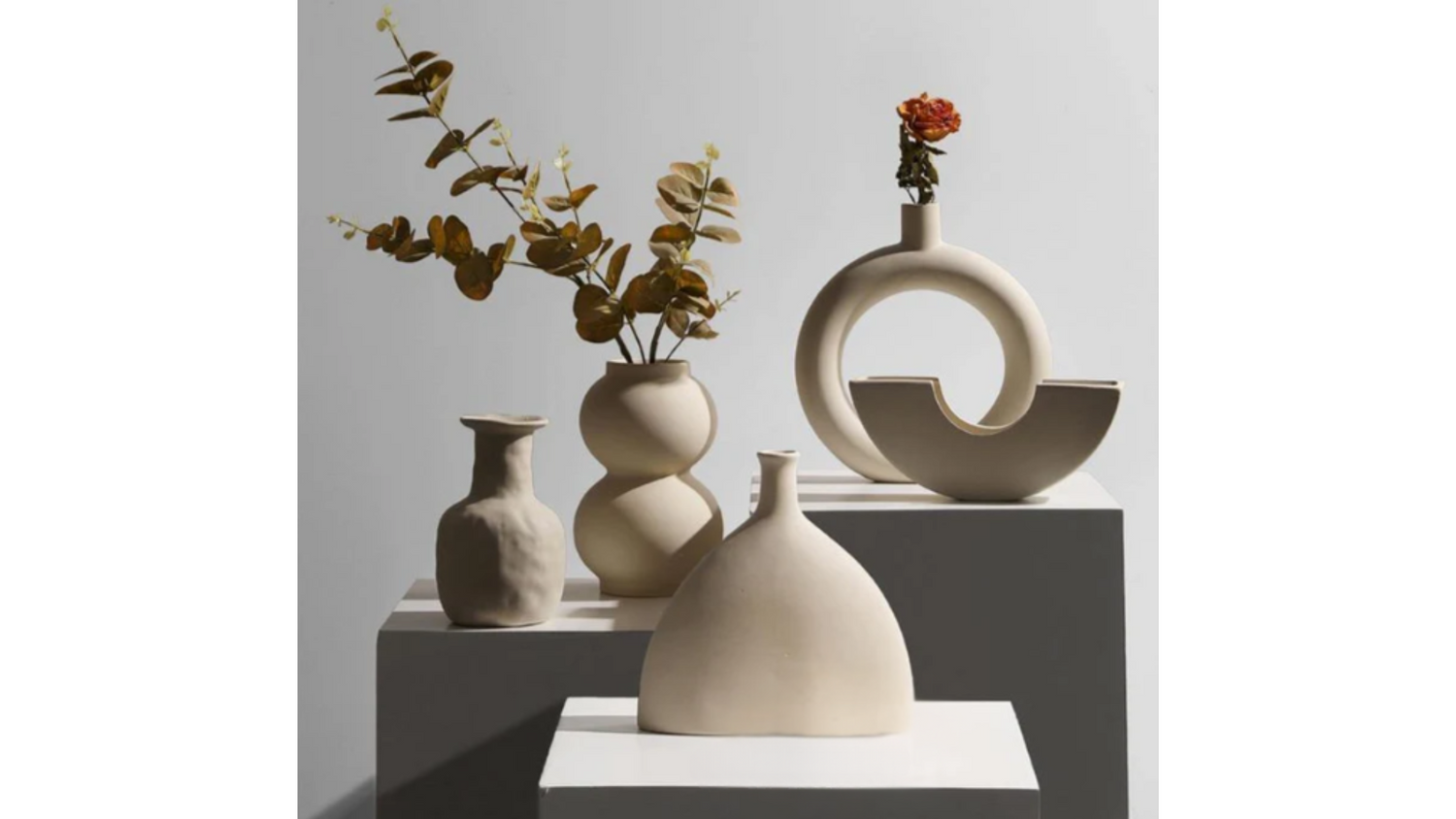 Diese eleganten Keramikvasen bieten eine Vielzahl von Formen, von schlichten Zylindern bis zu geschwungenen Designs. Ihre neutralen Beige- und Weißtöne harmonieren perfekt mit jeder Einrichtung und schaffen eine minimalistische, edle Atmosphäre.