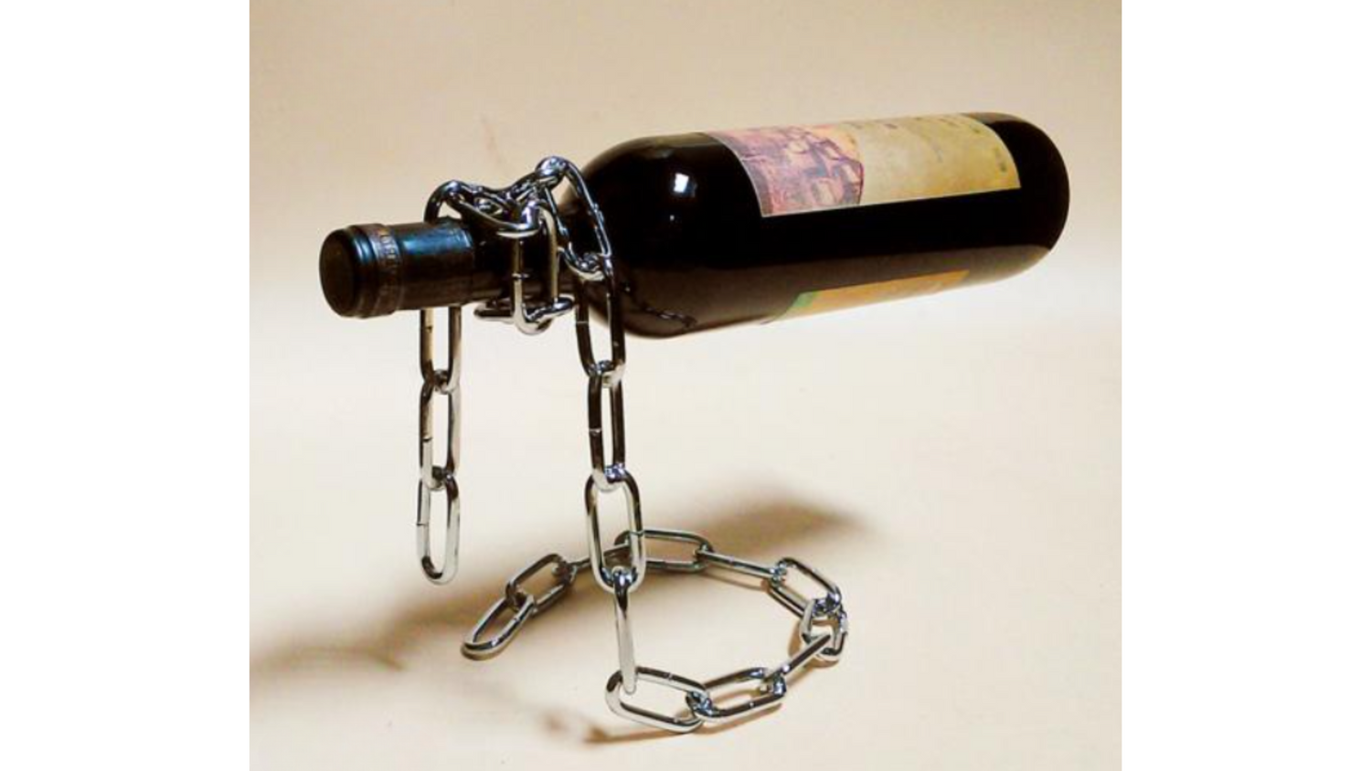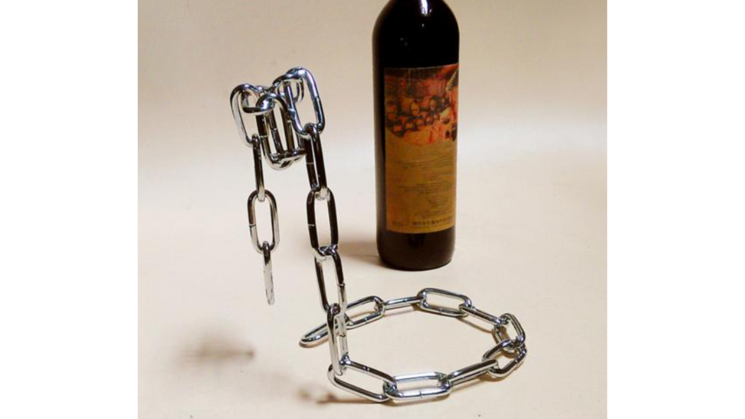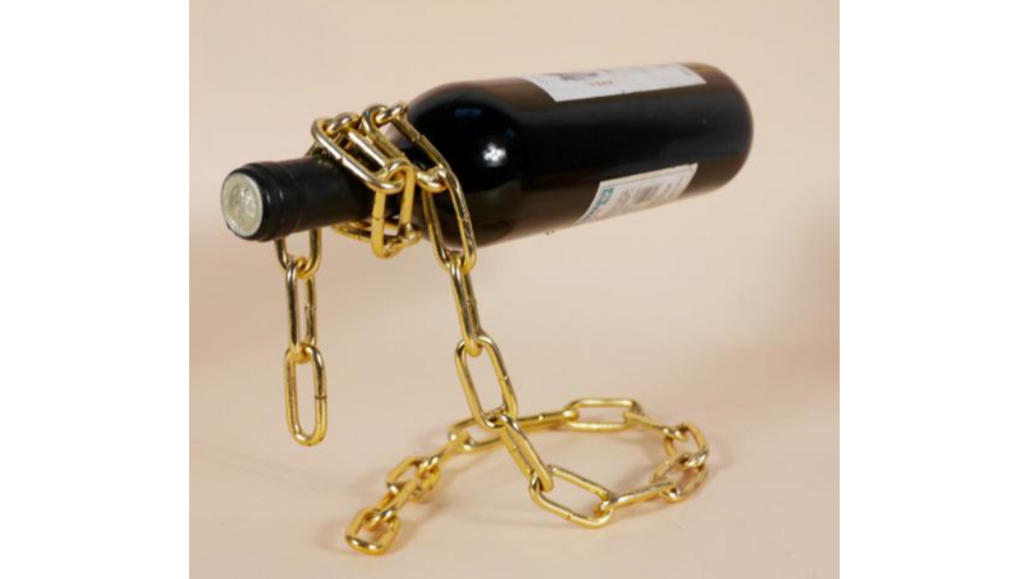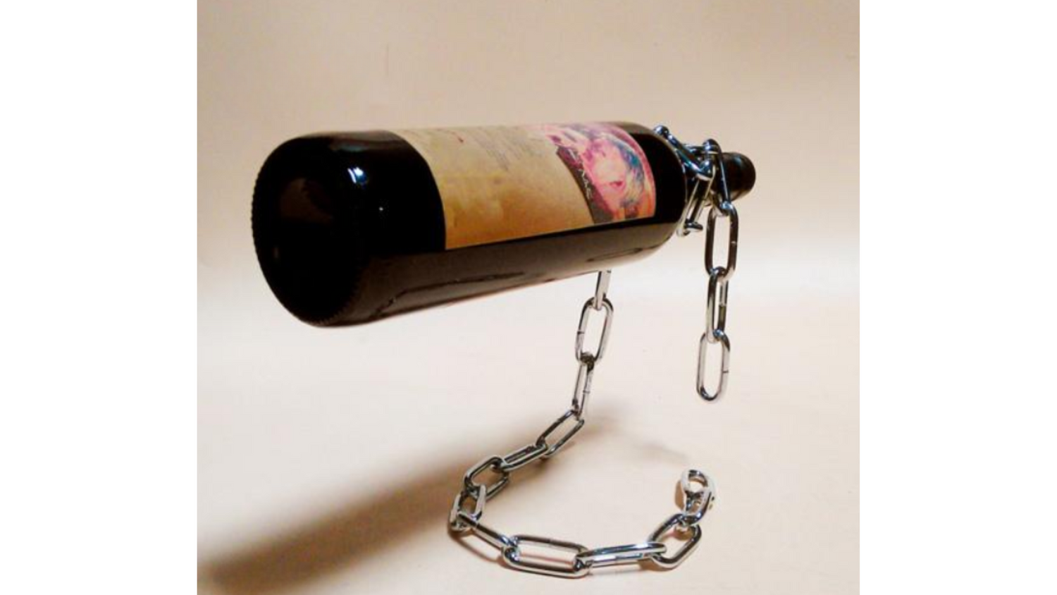 Der Weinhalter aus einer geschwungenen Kette lässt deine Flasche auf elegante Weise in der Luft schweben und sorgt für einen besonderen optischen Effekt.
